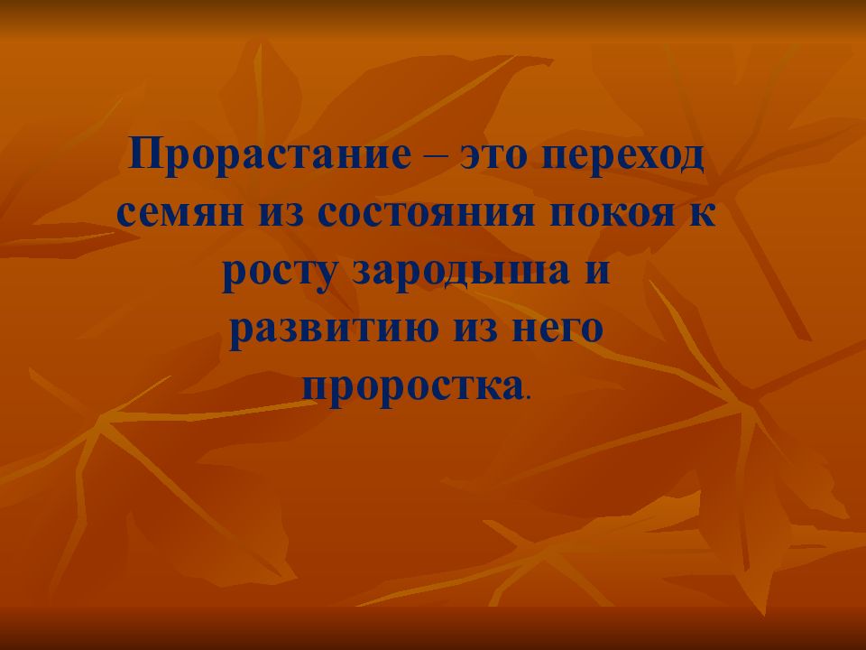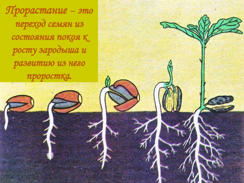 Прорастание – это переход семян из состояния покоя к росту зародыша и развитию из него проростка.