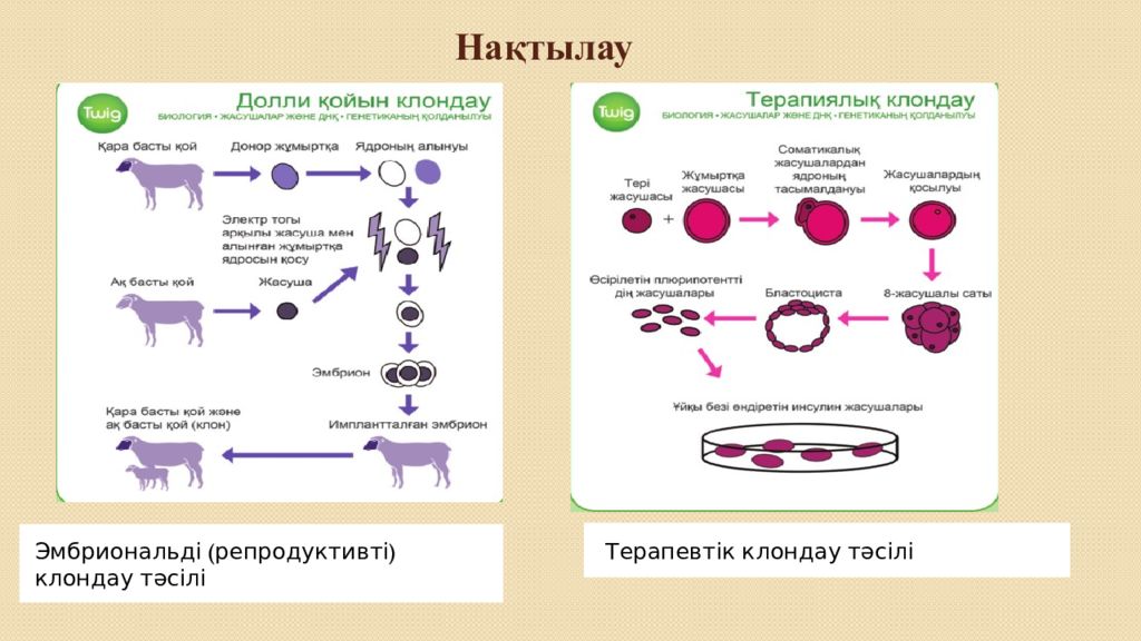 Эмбриональді (репродуктивті) клондау тәсілі Терапевтік клондау тәсілі