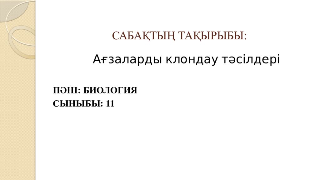 Ағзаларды клондау тәсілдері ПӘНІ: БИОЛОГИЯ СЫНЫБЫ: 11