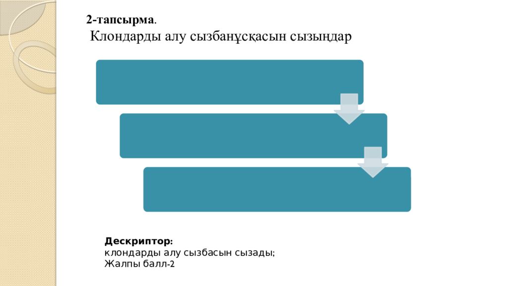 2-тапсырма. Клондарды алу сызбанұсқасын сызыңдар Дескриптор: клондарды алу сызбасын сызады; Жалпы балл-2