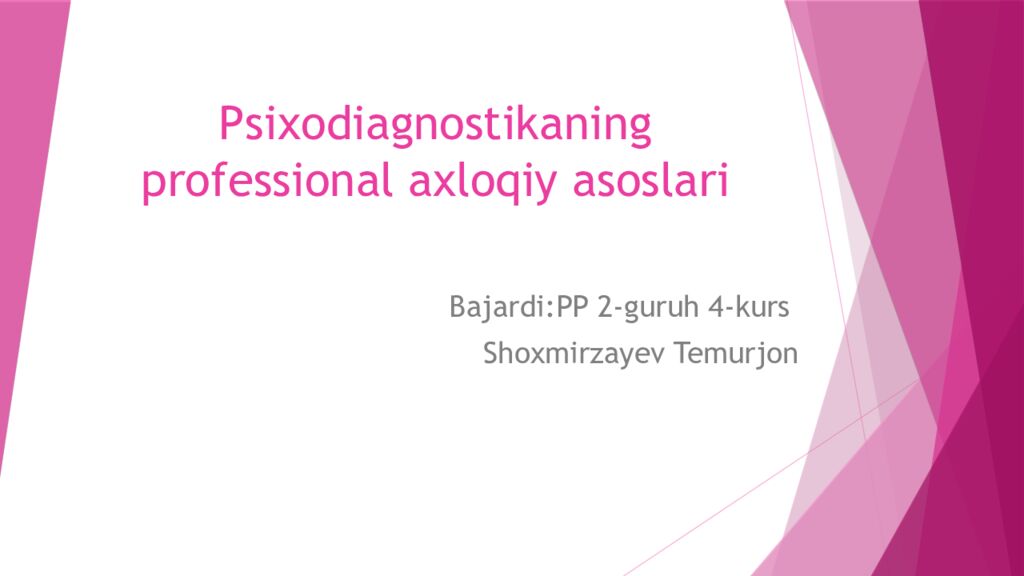 Первый слайд презентации: Psixodiagnostikaning professional axloqiy asoslari