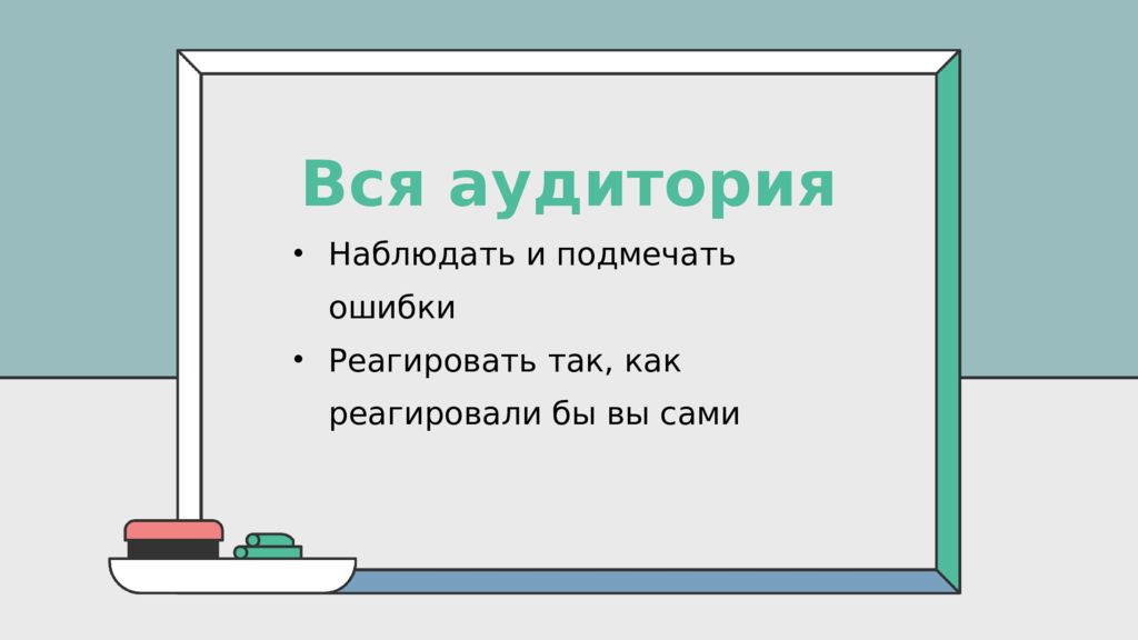 Наблюдать и подмечать ошибки Реагировать так, как реагировали бы вы сами Вс я аудитория