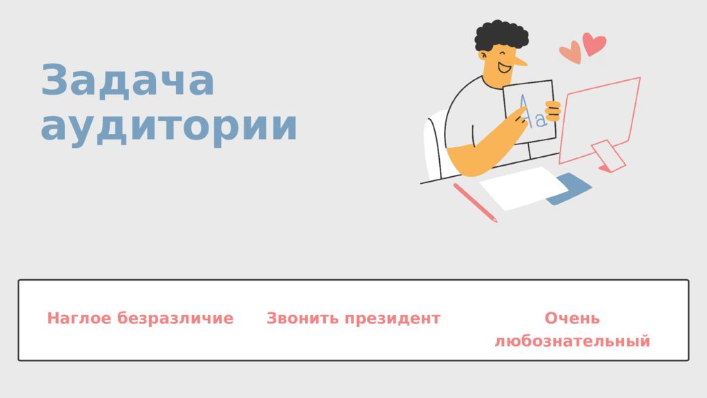 Задача аудитории Наглое безразличие Звонить президент Очень любознательный