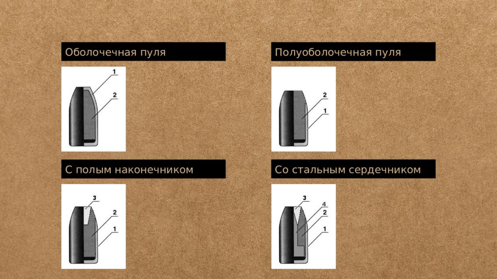 Оболочечная пуля С полым наконечником Полуоболочечная пуля Со стальным сердечником