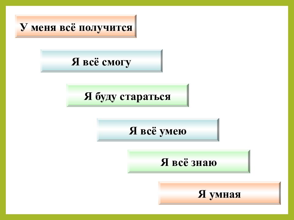 Я буду стараться У меня всё получится Я всё смогу Я умная Я всё умею Я всё знаю
