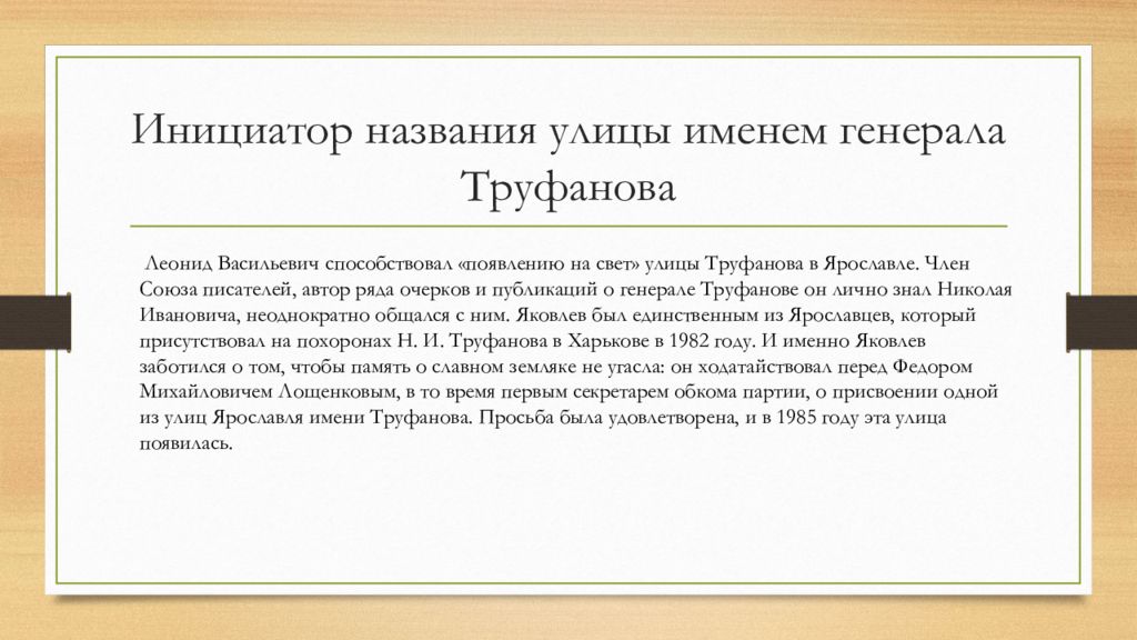Слайд 11: Инициатор названия улицы именем генерала Труфанова