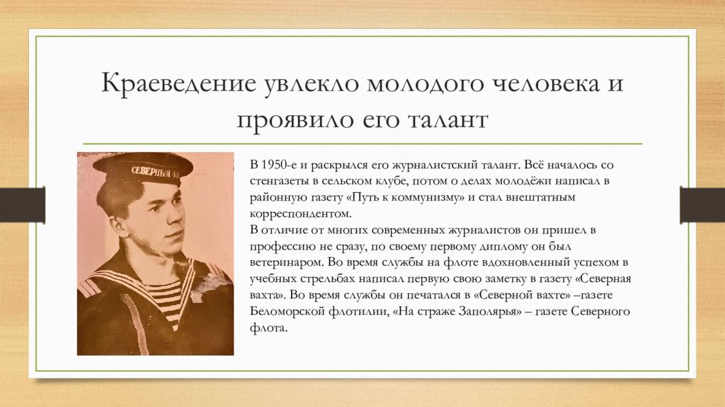 Слайд 4: Краеведение увлекло молодого человека и проявило его талант