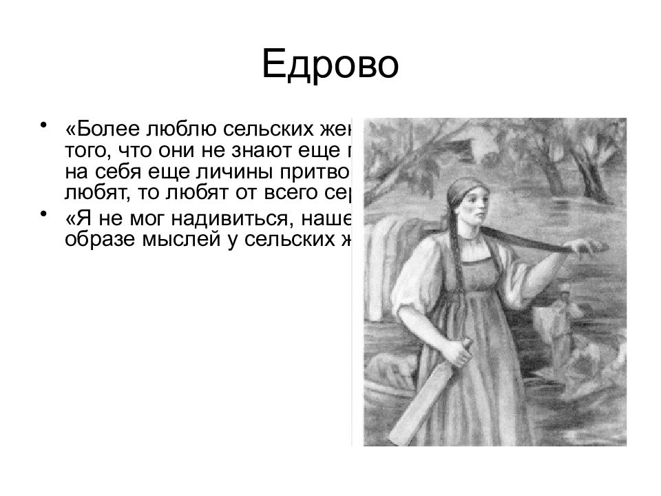 «Более люблю сельских женщин или крестьянок для того, что они не знают еще притворства, не налагают на себя еще личины притворной любви, а когда любят, то любят от всего сердца и искренно…» «Я не мог надивиться, нашед толико благородства в образе мыслей у сельских жителей».
