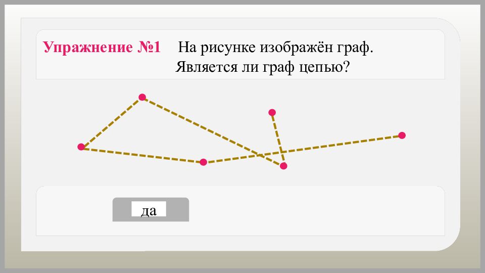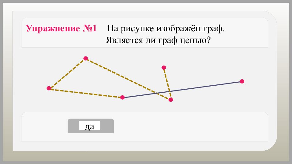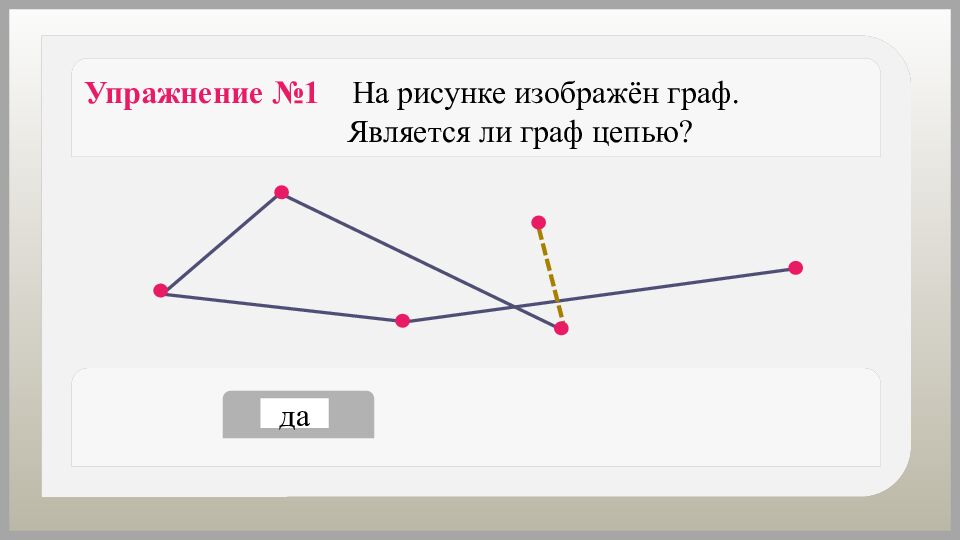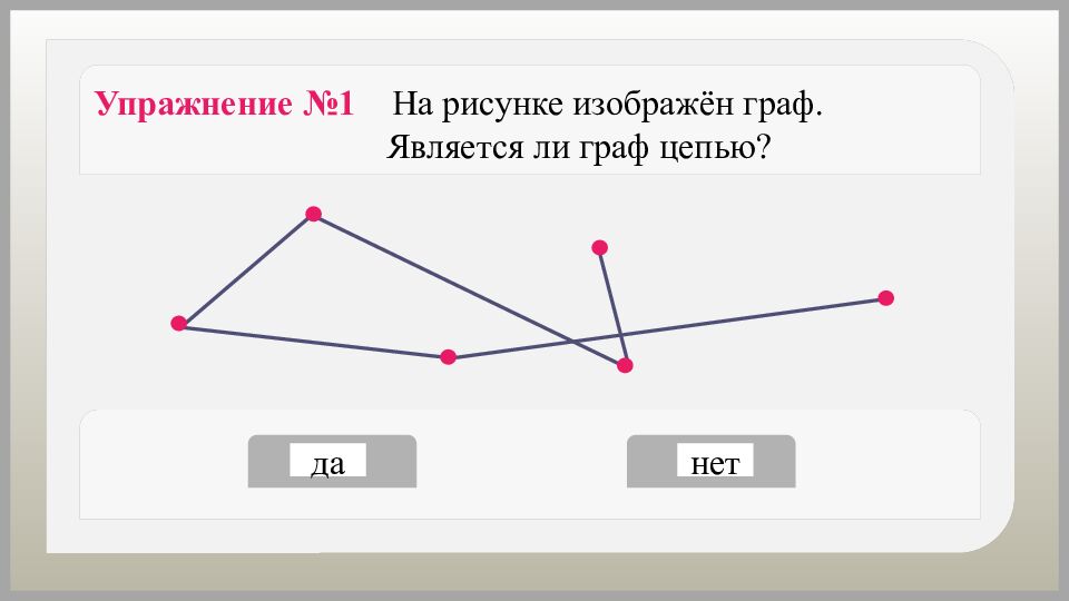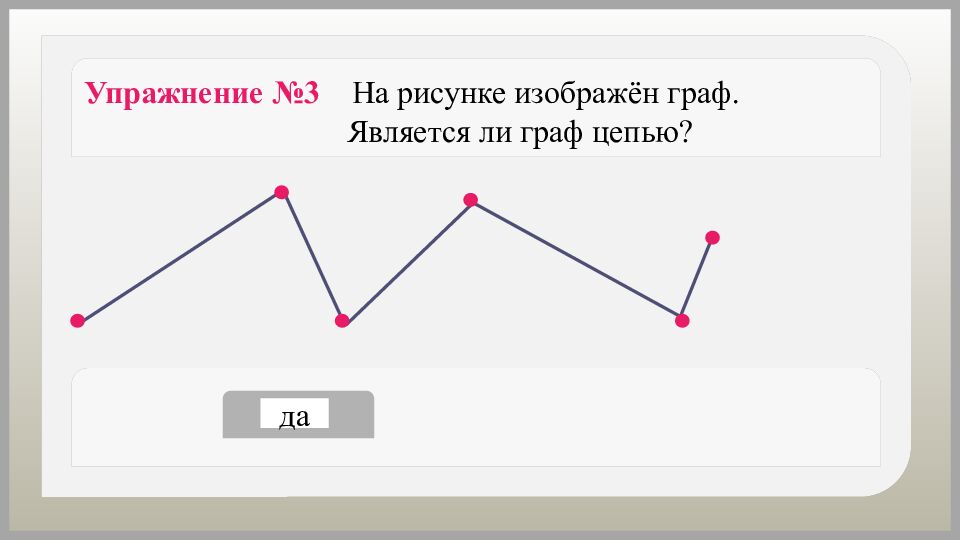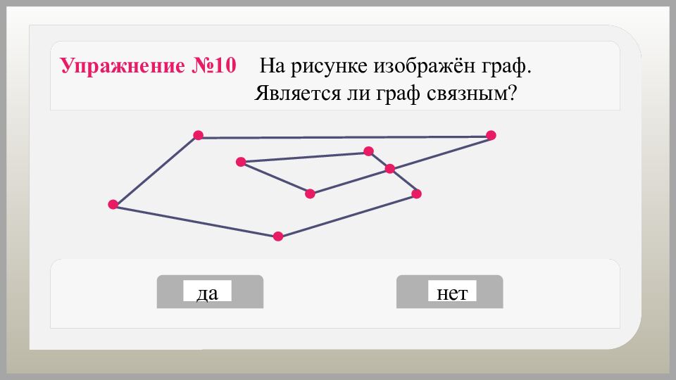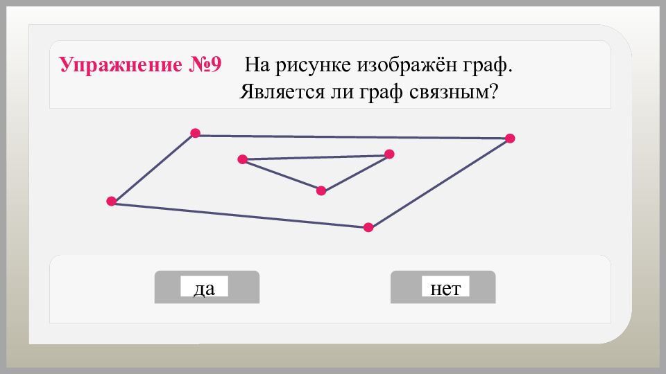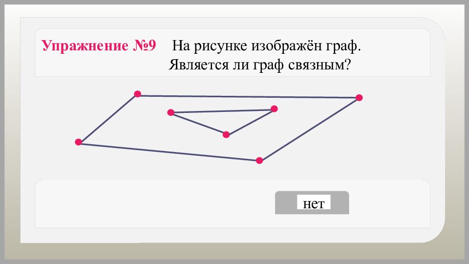 Упражнение №9 На рисунке изображён граф. Является ли граф связным? да нет