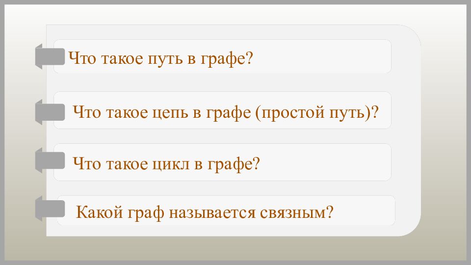 Что такое путь в графе? Что такое цепь в графе (простой путь)? Какой граф называется связным? Что такое цикл в графе?