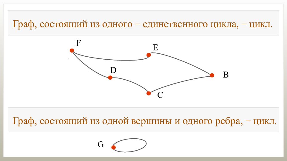 Граф, состоящий из одного − единственного цикла, − цикл. Граф, состоящий из одной вершины и одного ребра, − цикл.