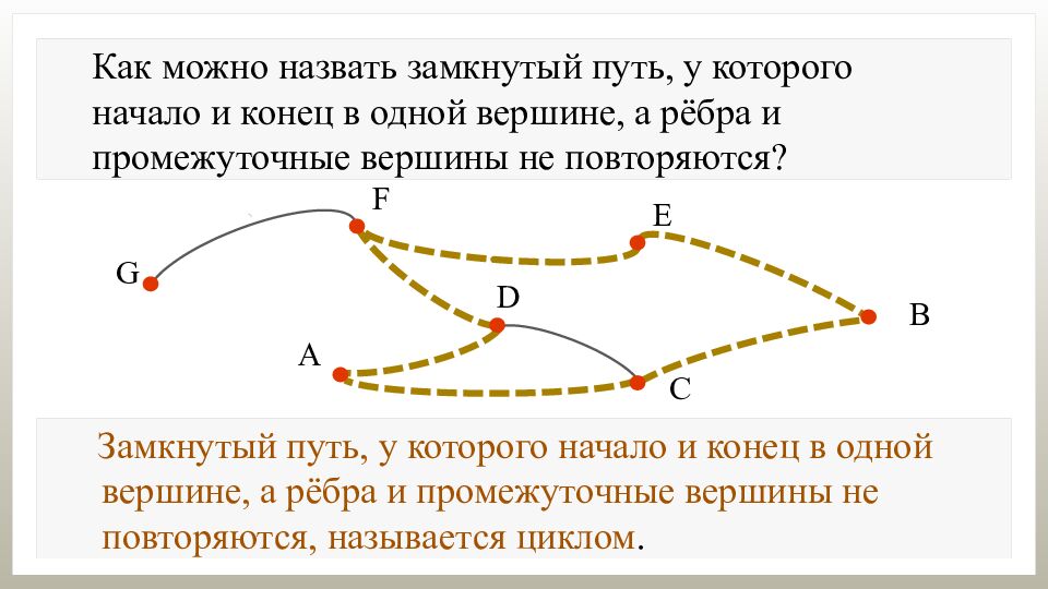 Как можно назвать замкнутый путь, у которого начало и конец в одной вершине, а рёбра и промежуточные вершины не повторяются?