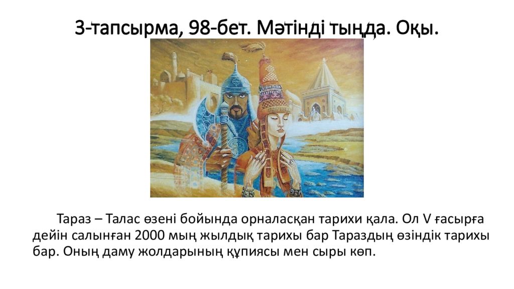 Слайд 6: 3-тапсырма, 98-бет. Мәтінді тыңда. Оқы