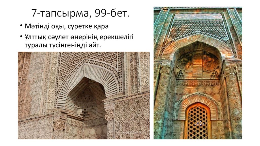 Мәтінді оқы, суретке қара Ұлттық сәулет өнерінің ерекшелігі туралы түсінгеніңді айт.