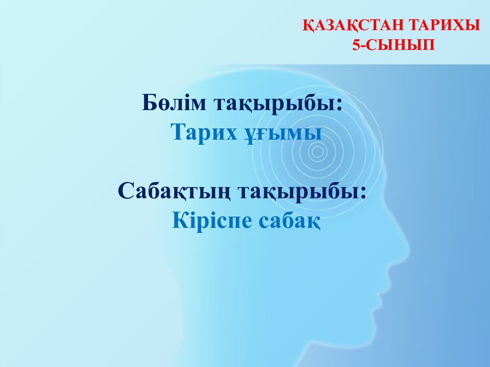 ҚАЗАҚСТАН ТАРИХЫ 5-СЫНЫП Бөлім тақырыбы: Тарих ұғымы Сабақтың тақырыбы: Кіріспе сабақ