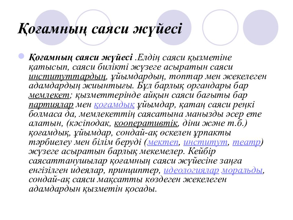 Первый слайд презентации: Қазақстанның саяси жүйесі