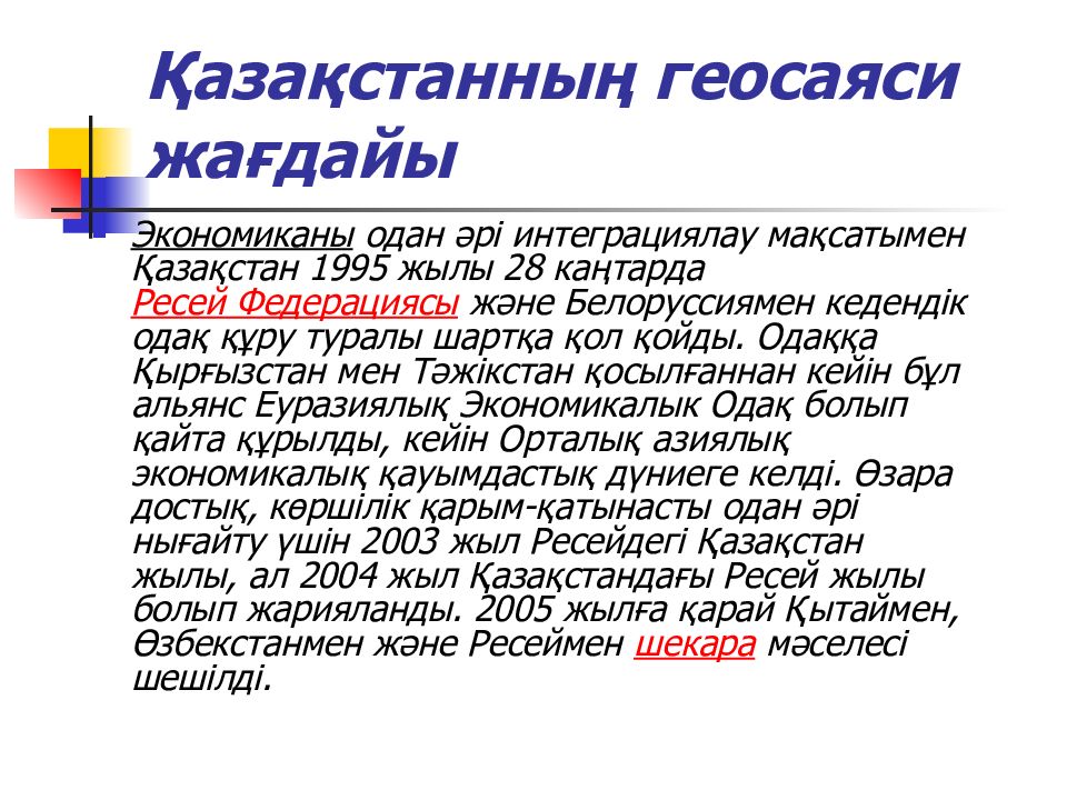 Слайд 14: Қазақстанның геосаяси жағдайы