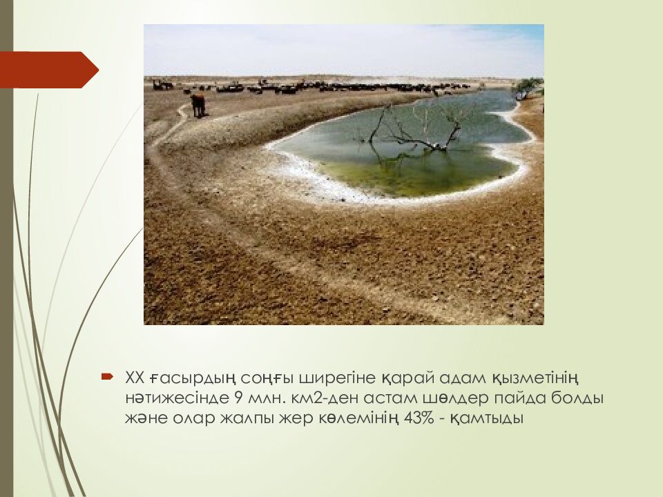 ХХ ғасырдың соңғы ширегіне қарай адам қызметінің нәтижесінде 9 млн. км2-ден астам шөлдер пайда болды және олар жалпы жер көлемінің 43% - қамтыды