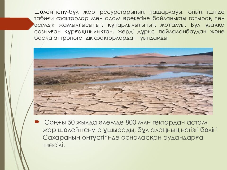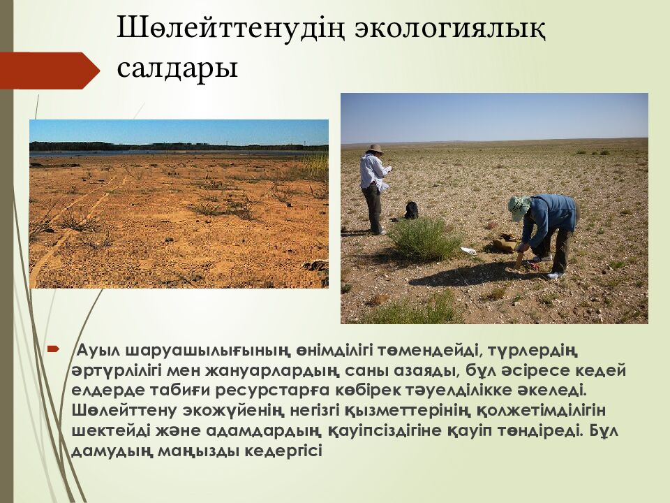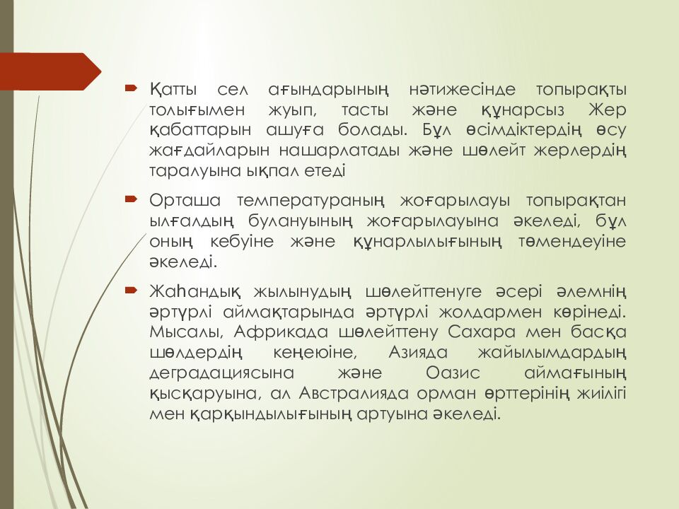 Слайд 17: Шөлейттенудің экологиялық салдары