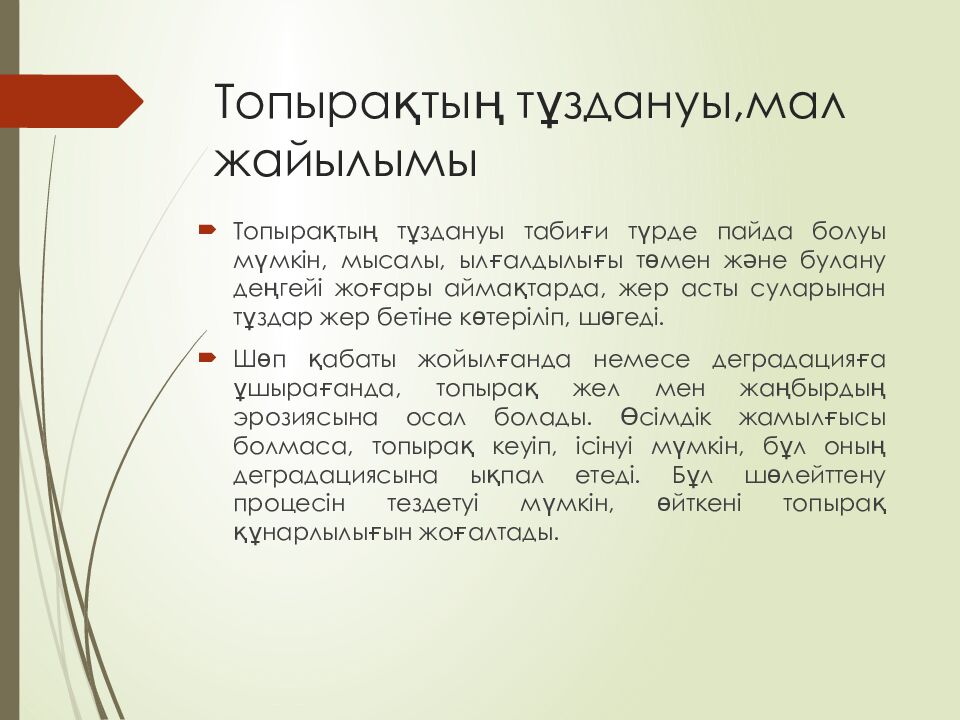 Слайд 6: Топырақтың тұздануы,мал жайылымы