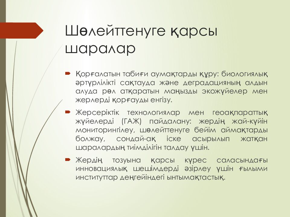 Последний слайд презентации: Қазіргі заманғы шөлейттену мәселелері: Шөлейттенуге қарсы шаралар
