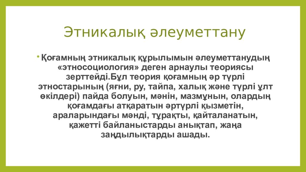 Слайд 2: Этникалық әлеуметтану