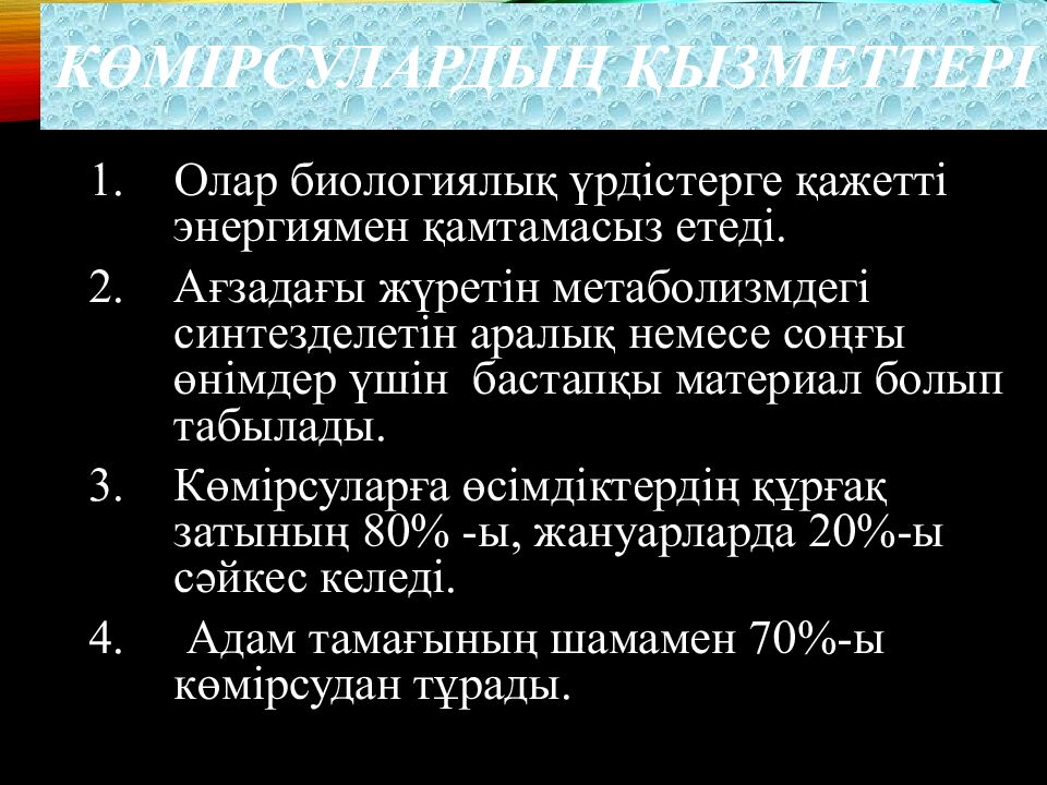 Слайд 5: КӨМІРСУЛАРДЫҢ ҚЫЗМЕТТЕРІ