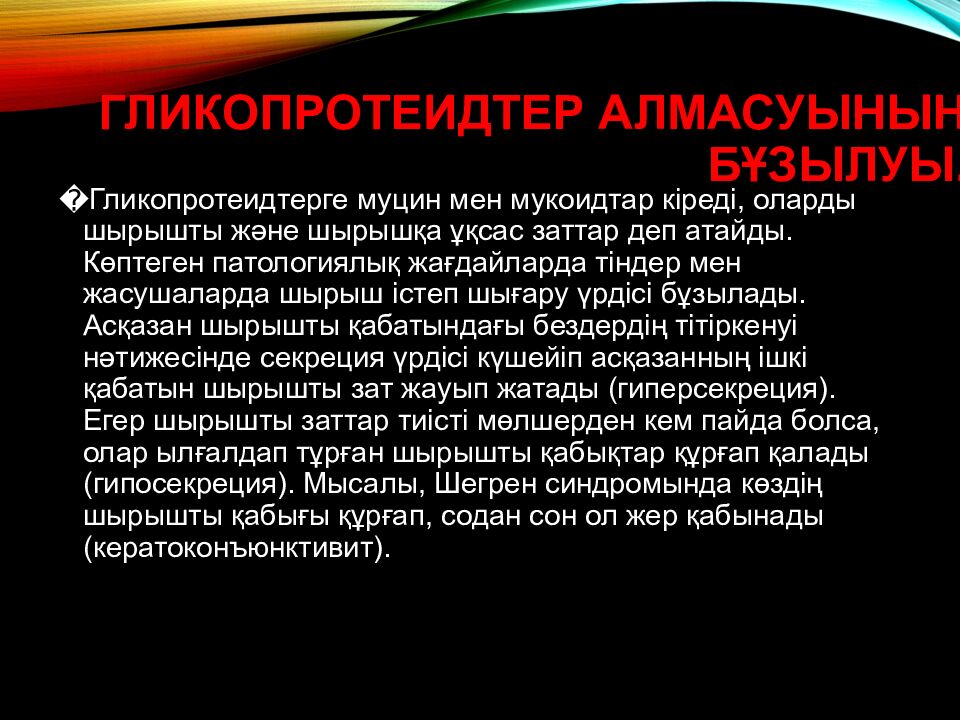 Слайд 23: ГЛИКОПРОТЕИДТЕР АЛМАСУЫНЫҢ БҰЗЫЛУЫ