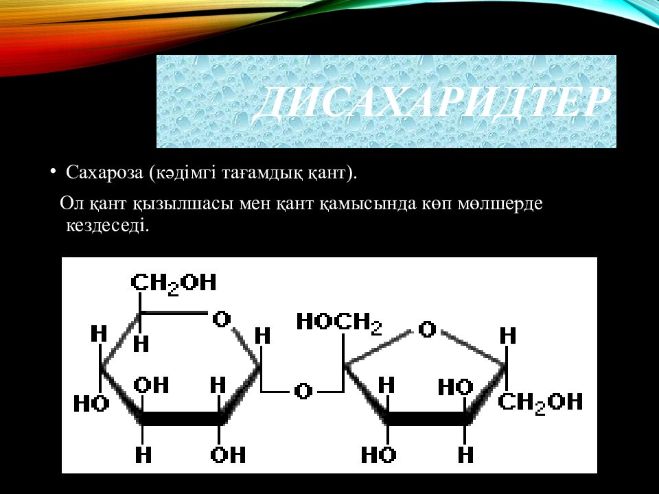 Сахароза (кәдімгі тағамдық қант). Ол қант қызылшасы мен қант қамысында көп мөлшерде кездеседі.