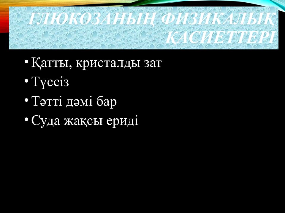 Слайд 18: ГЛЮКОЗАНЫҢ ФИЗИКАЛЫҚ ҚАСИЕТТЕРІ