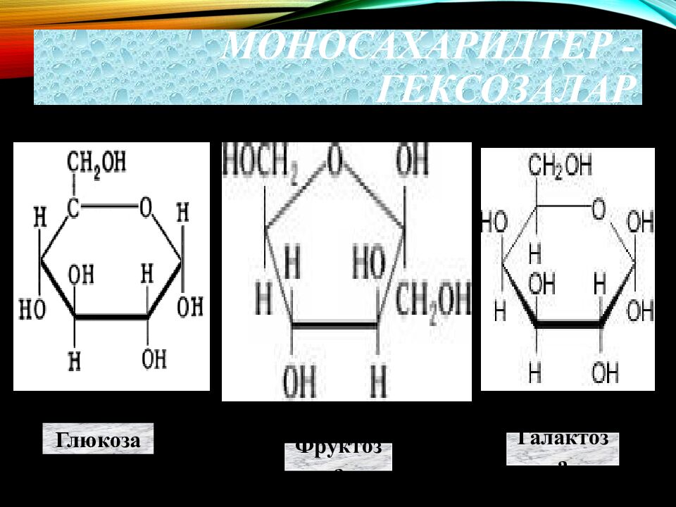 Слайд 12: МОНОСАХАРИДТЕР - ГЕКСОЗАЛАР