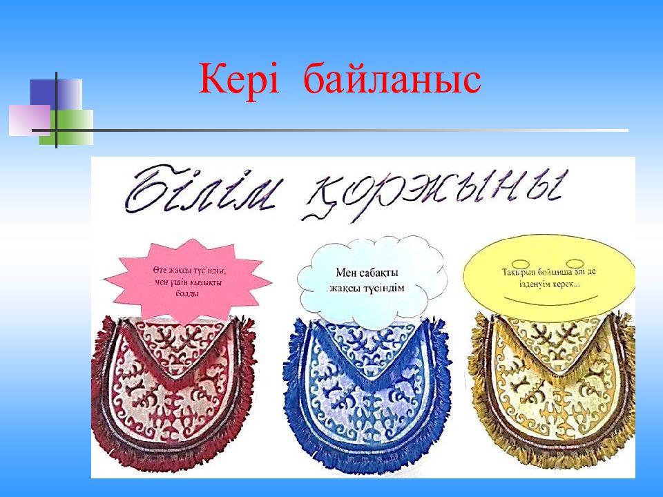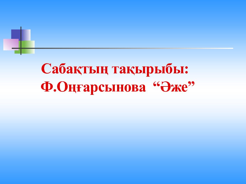 Мәтіндерді түсініп оқы. Олар қандай жанрда жазылған ? Сәйкестендір. Ата – бәйтерек, Бала – жапырақ, Ана – жағасындағы құрақ. Менің әжем – ақ әжем, Ұл мен қыздың бағы әжем. Ертегі айтып бер десең, Айтып берер тағы әжем. Бала, бала, бала - деп, Түнде шошып оянған. Түн ұйқысын төрт бөліп, Түнде бесік таянаған. Бұл кім ? Жұмбақ Мақал Өлең Дескриптор Білім алушы − мақалды анықтайды - өлеңді анықтайды − жұмбақты анықтайды ; − шығармалардың жанрлық ерекшеліктерін түсіндіреді.