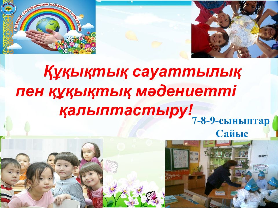 Первый слайд презентации: Құқықтық сауаттылық пен құқықтық мәдениетті қалыптастыру !