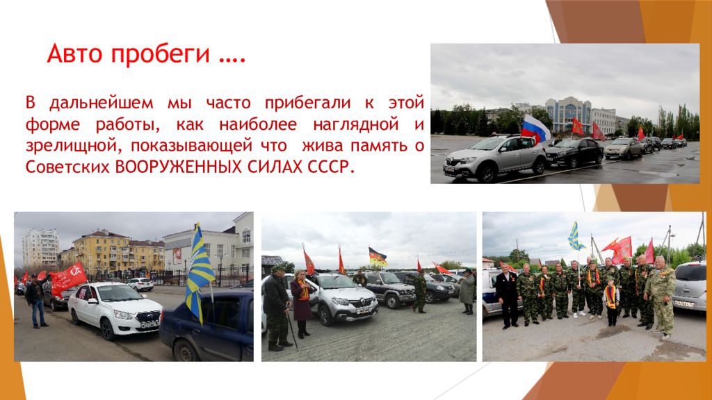 Авто пробеги …. В дальнейшем мы часто прибегали к этой форме работы, как наиболее наглядной и зрелищной, показывающей что жива память о Советских ВООРУЖЕННЫХ СИЛАХ СССР.