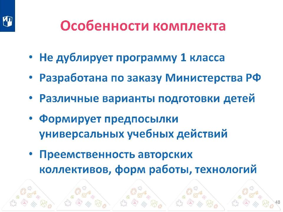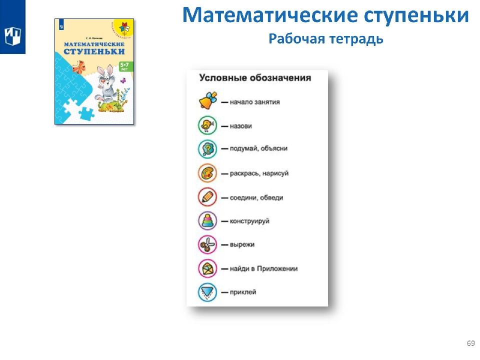 Слайд 70: Признаки предметов (размер, цвет, форма) Пространственные и временные представления Подготовка к изучению чисел