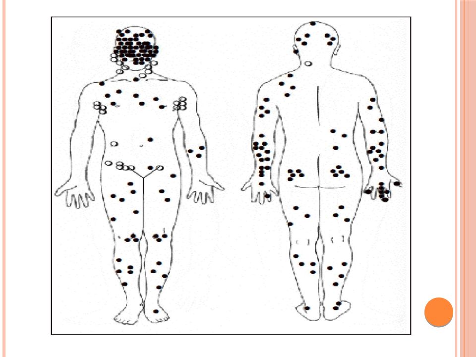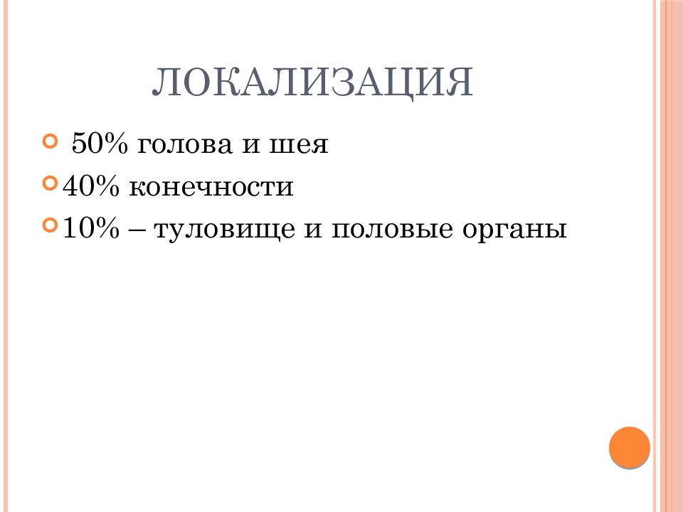 50% голова и шея 40 % конечности 10 % – туловище и половые органы