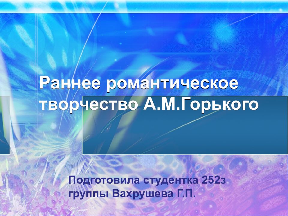 Первый слайд презентации: Раннее романтическое творчество А.М.Горького