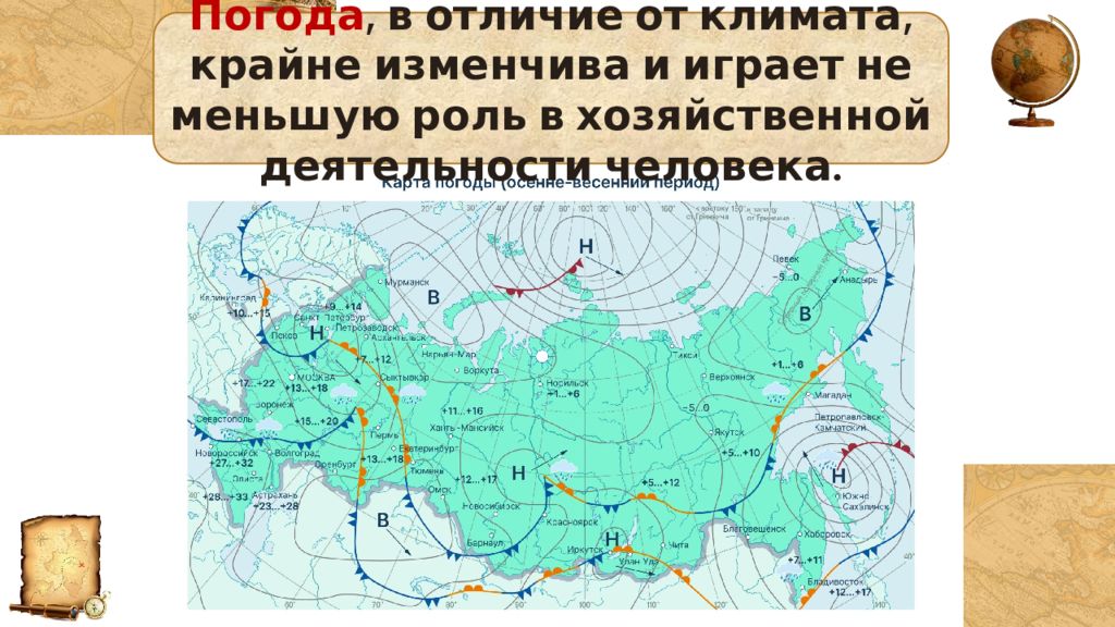 Погода, в отличие от климата, крайне изменчива и играет не меньшую роль в хозяйственной деятельности человека.