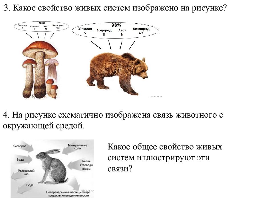 3. Какое свойство живых систем изображено на рисунке? 4. На рисунке схематично изображена связь животного с окружающей средой. Какое общее свойство живых систем иллюстрируют эти связи?