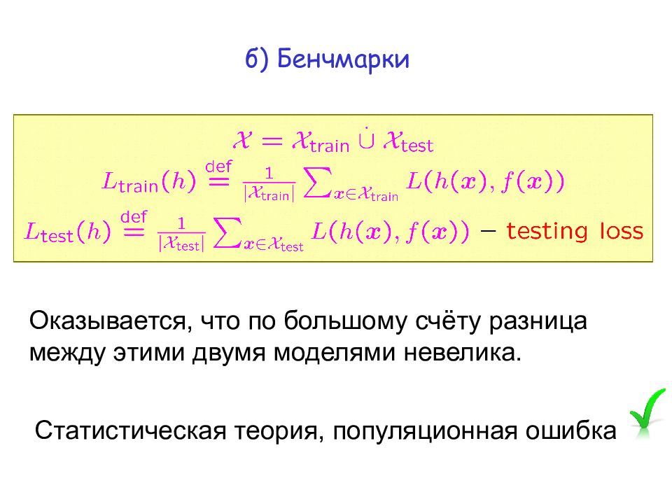 б ) Бенчмарки Оказывается, что по большому счёту разница между этими двумя моделями невелика. Статистическая теория, популяционная ошибка