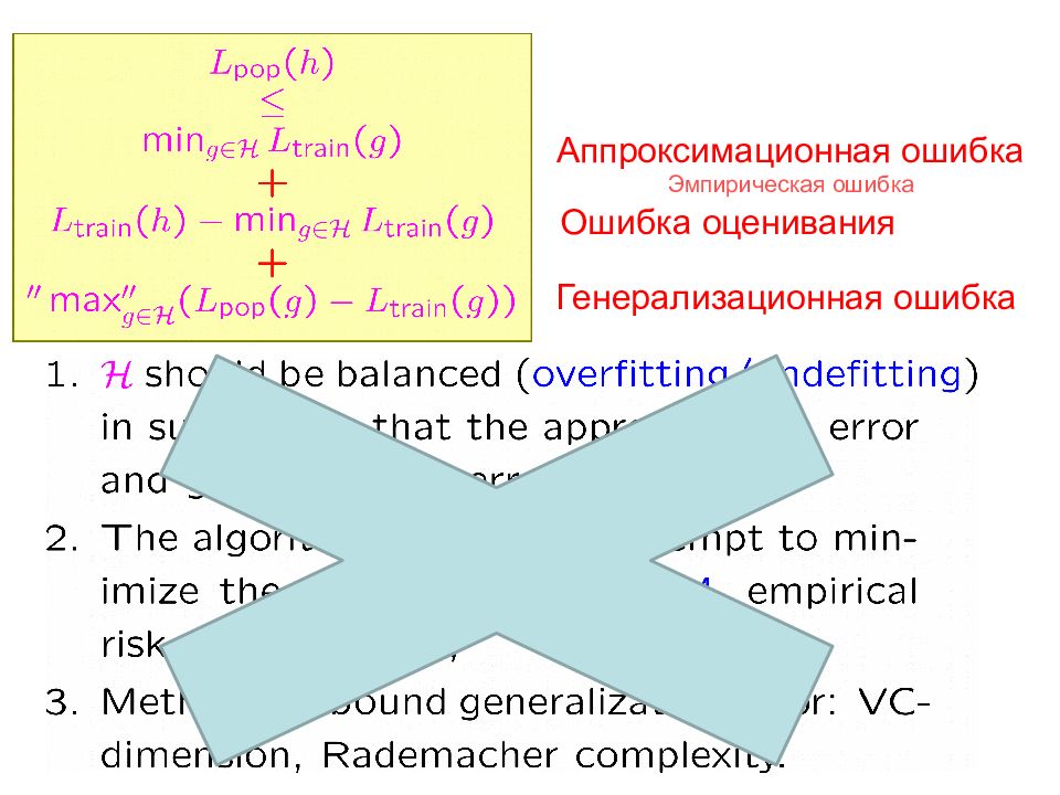 Аппроксимационная ошибка Ошибка оценивания Генерализационная ошибка Классическая теория ( underfitting / overfitting ): Эмпирическая ошибка
