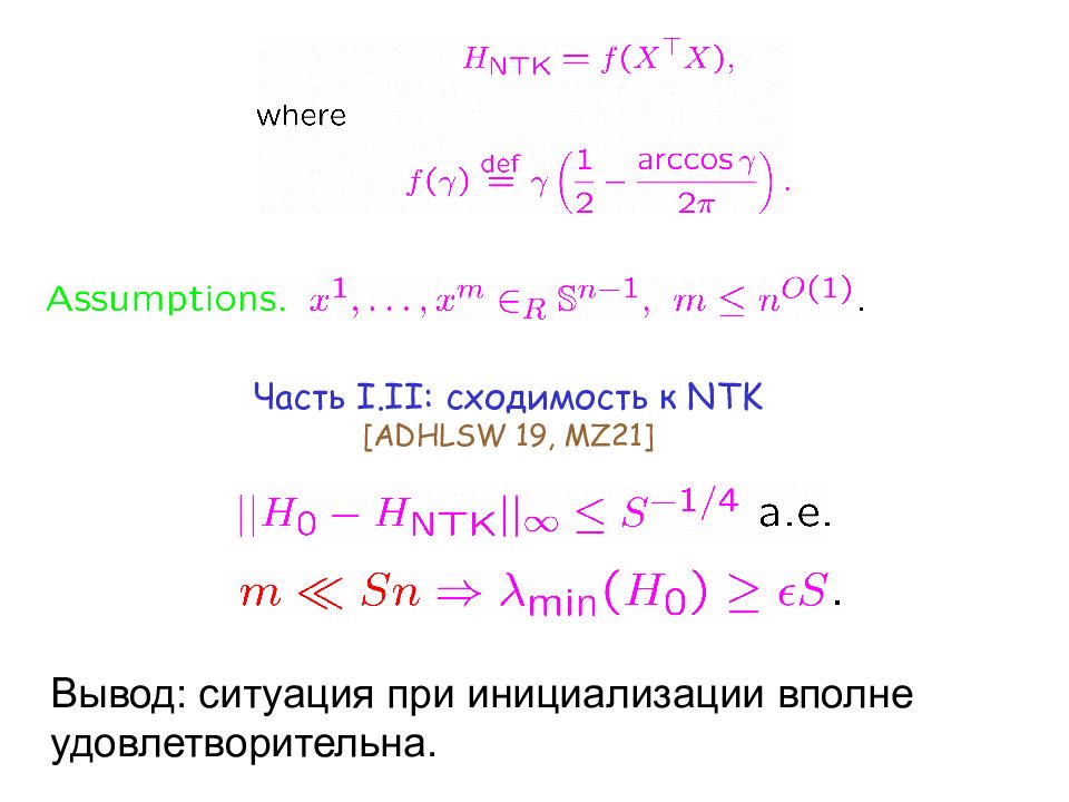 Часть I.II: сходимость к NTK [ADHLSW 19, MZ21] Вывод : ситуация при инициализации вполне удовлетворительна.