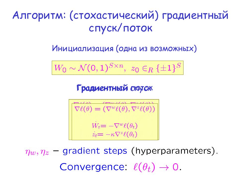 Алгоритм: (стохастический) градиентный спуск/поток Инициализация (одна из возможных) Градиентный спуск Градиентный поток
