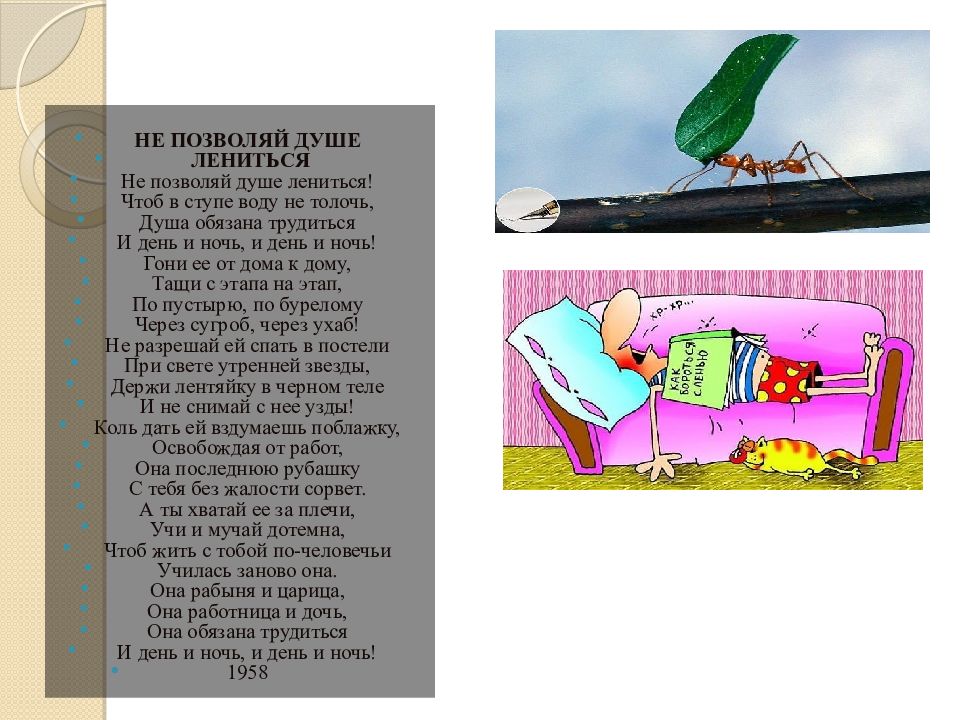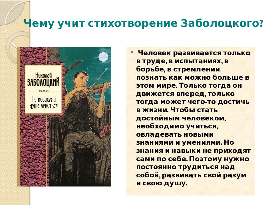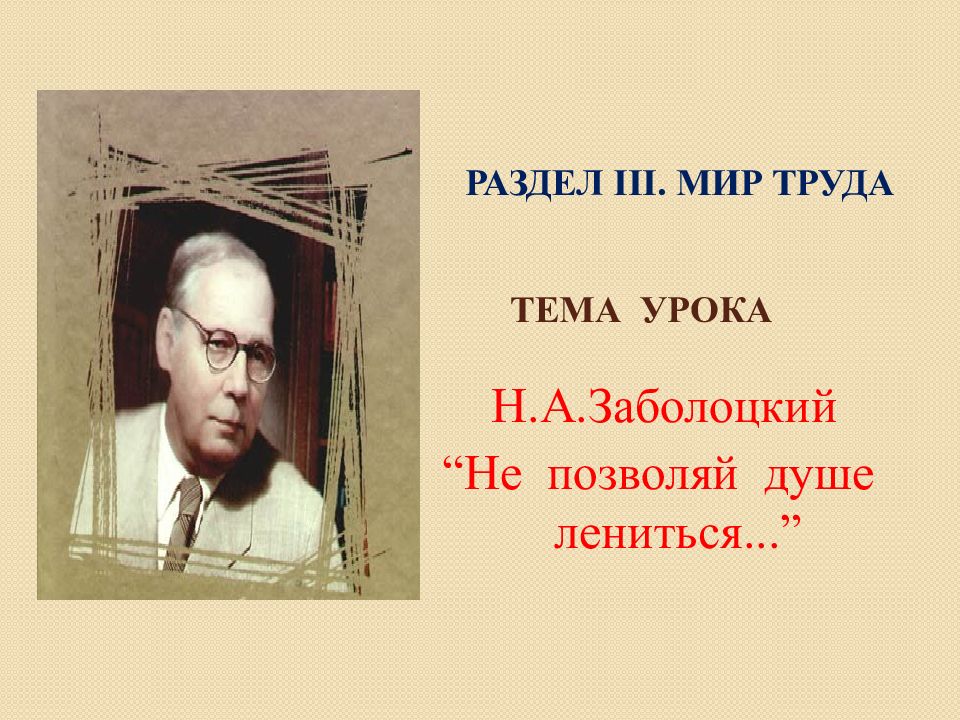 Н.А.Заболоцкий “Не позволяй душе лениться...” Тема урока