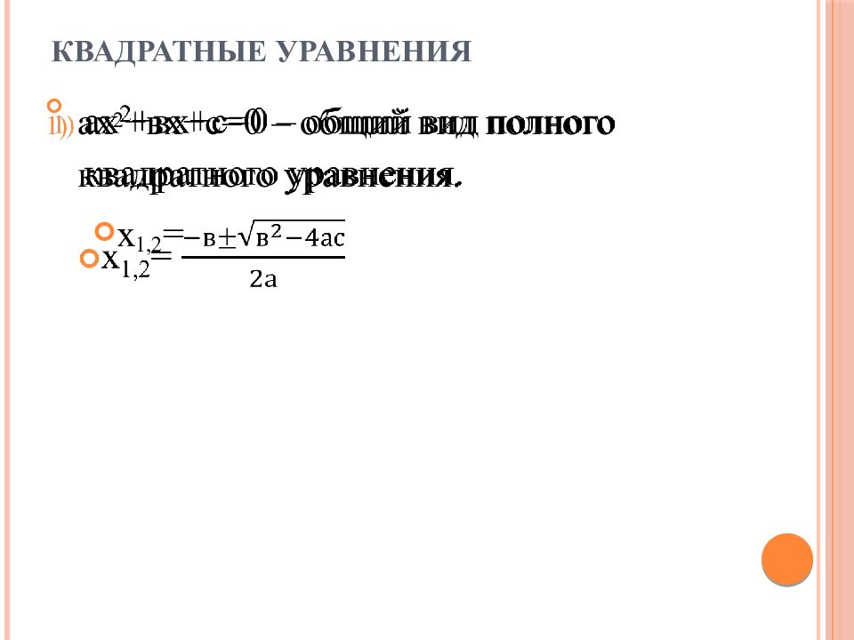ах 2 +вх+с=0 – общий вид полного квадратного уравнения. х 1,2 =