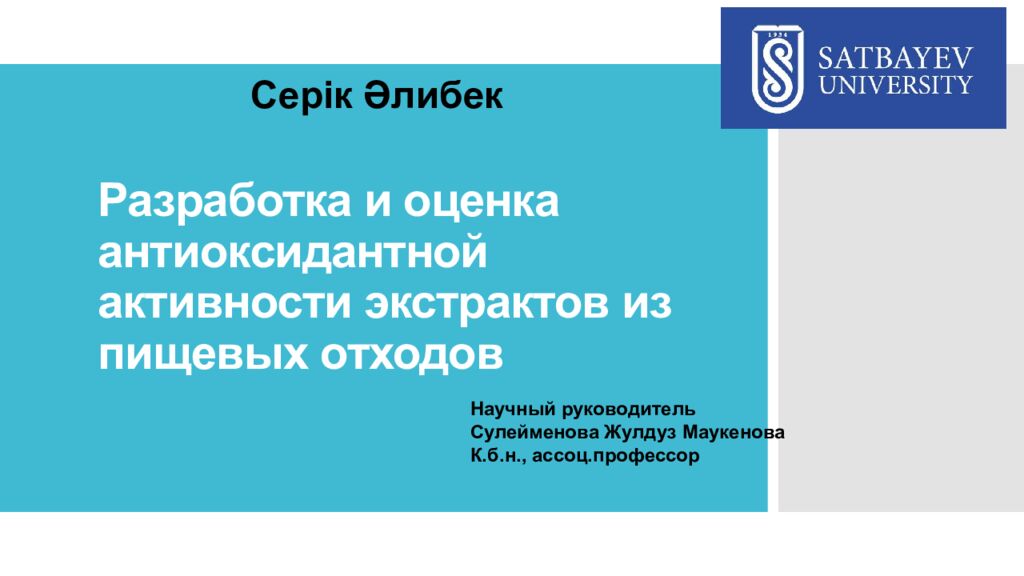 Серік Әлибек Научный руководитель Сулейменова Жулдуз Маукенова К.б.н., ассоц.профессор