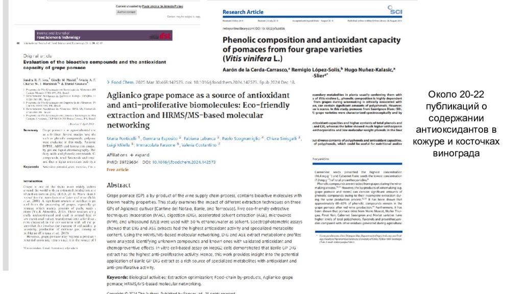 Около 20-22 публикаций о содержании антиоксидантов в кожуре и косточках винограда