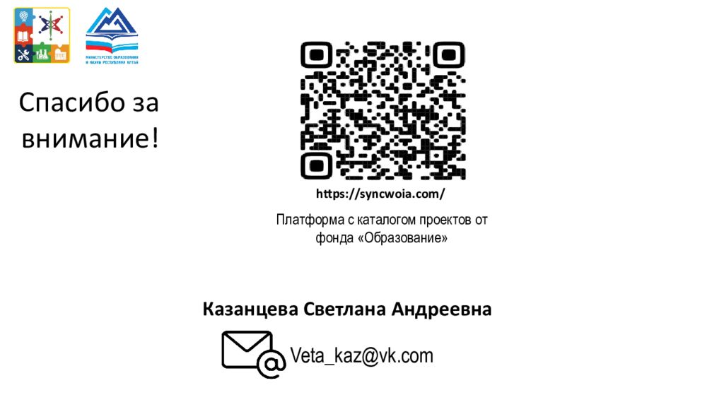 Казанцева Светлана Андреевна Педагог дополнительного образования, АУ ДО РА «Республиканский центр дополнительного образования». Призёр II степени республиканского конкурса педагогического мастерства «Сердце отдаю детям - 2024»