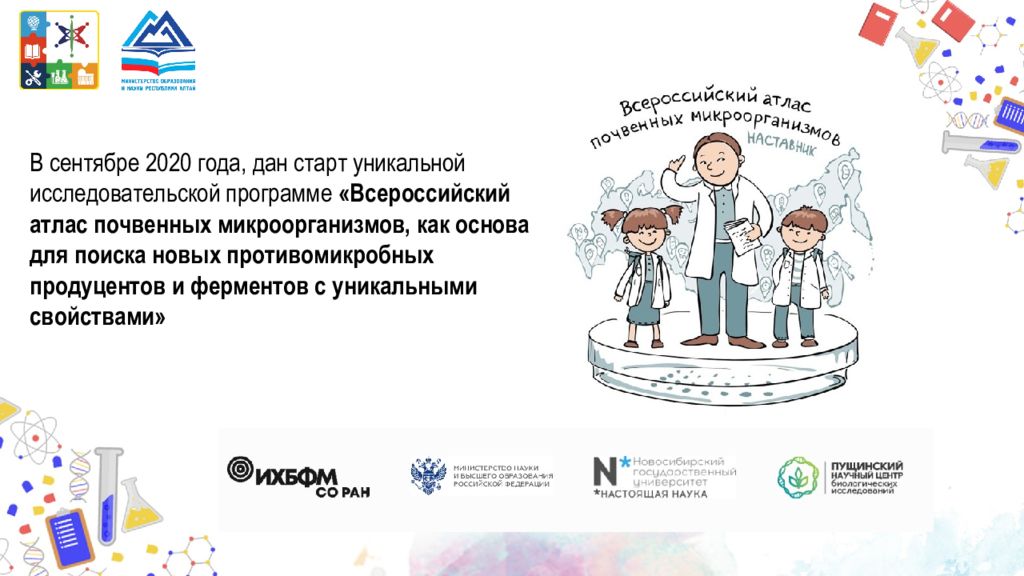 В сентябре 2020 года, дан старт уникальной исследовательской программе «Всероссийский атлас почвенных микроорганизмов, как основа для поиска новых противомикробных продуцентов и ферментов с уникальными свойствами»