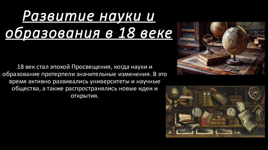 Первый слайд презентации: Развитие науки и образования в 18 веке